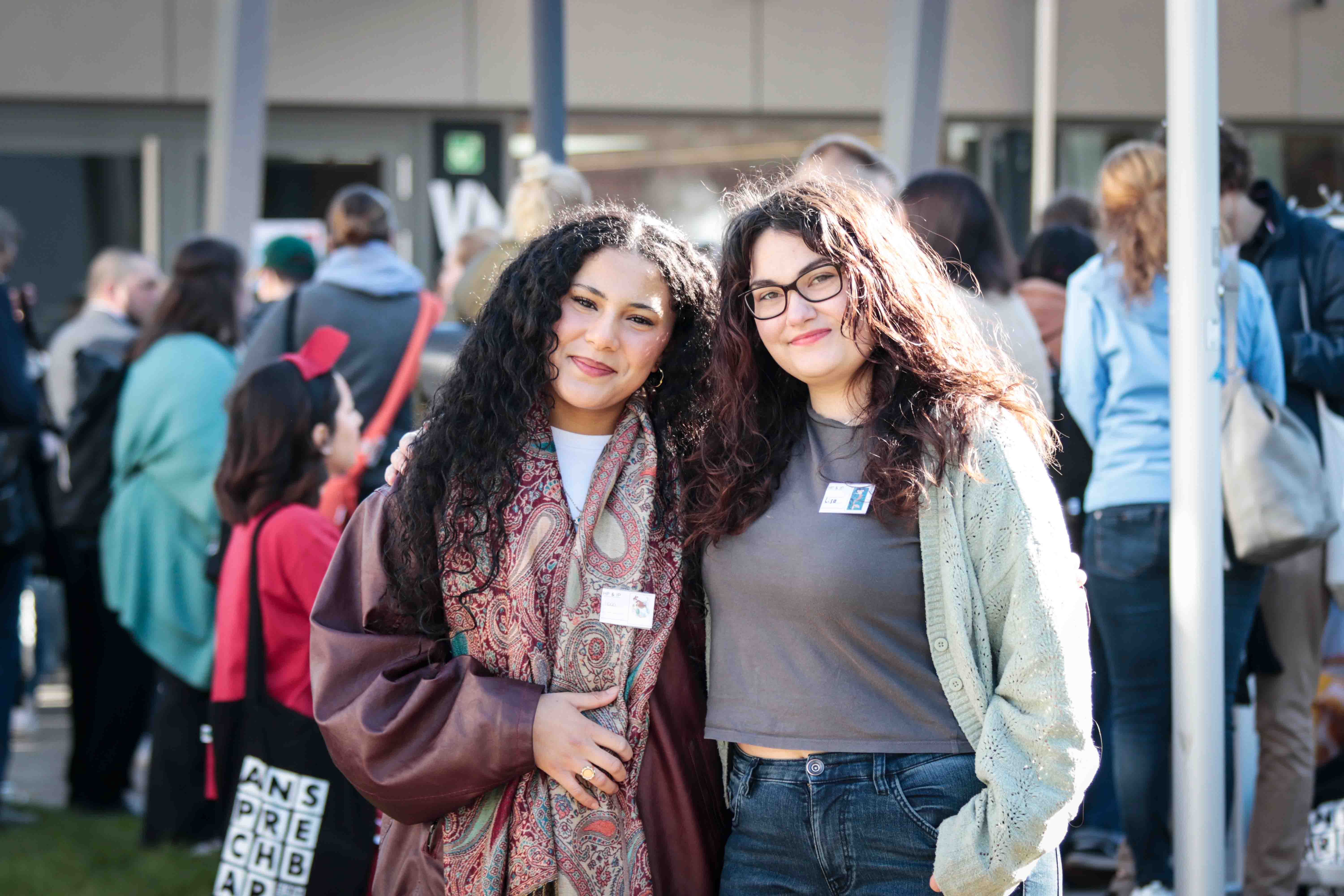 Hoda Al-Qattan und Lisa Kettler (v.l.n.r.) starten gemeinsam mit rund 300 Erstsemester-Studierenden an der EvH Bochum in eine neue Lebensphase. (© EvH Bochum).