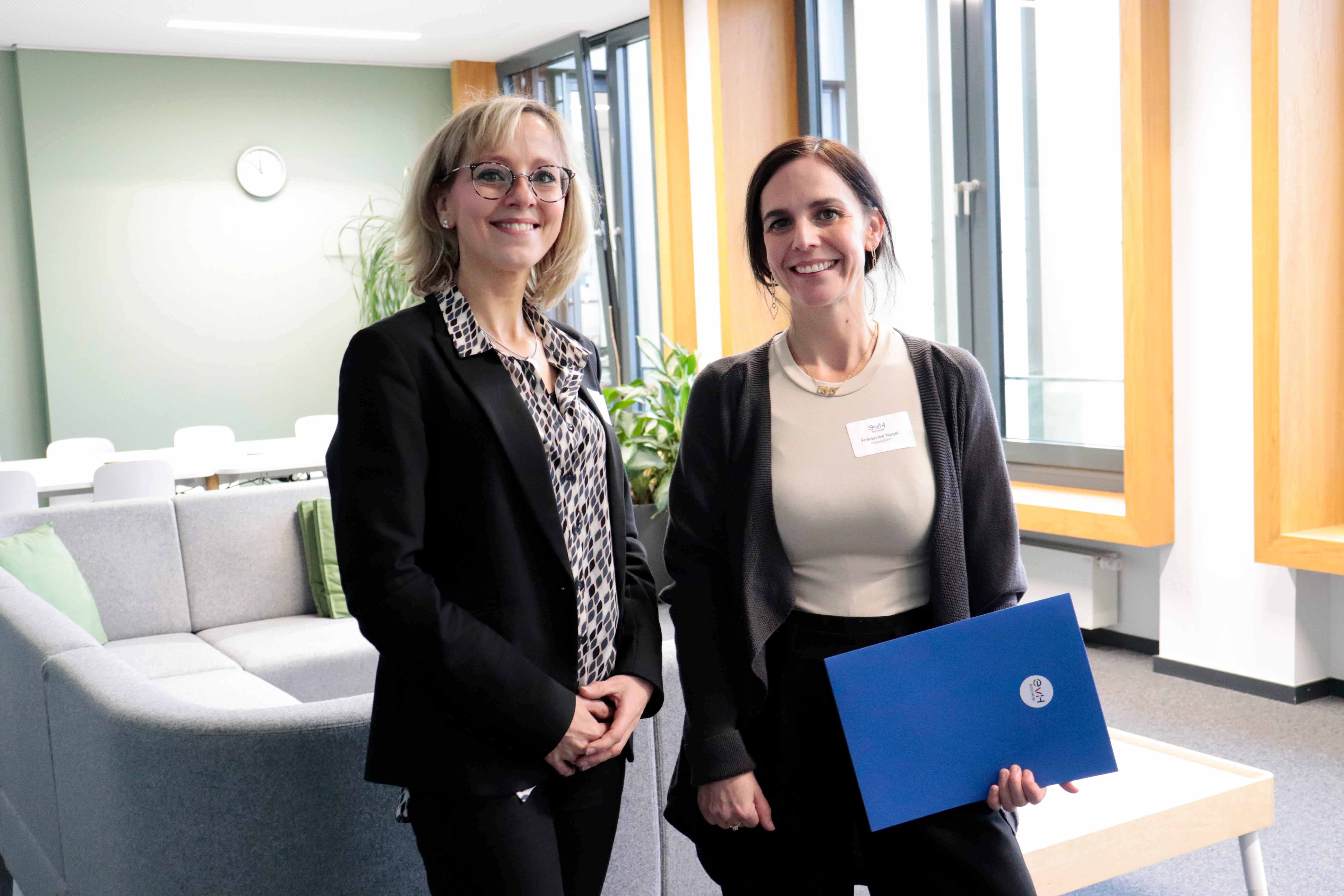 Win-Win für Fördernde und Geförderte (v.l.n.r.): Annika Machleit-Ebner vom EVA Ruhr und EvH-Studierende Friederike Nagel profitieren vom Deutschlandstipendium. (© EvH Bochum)